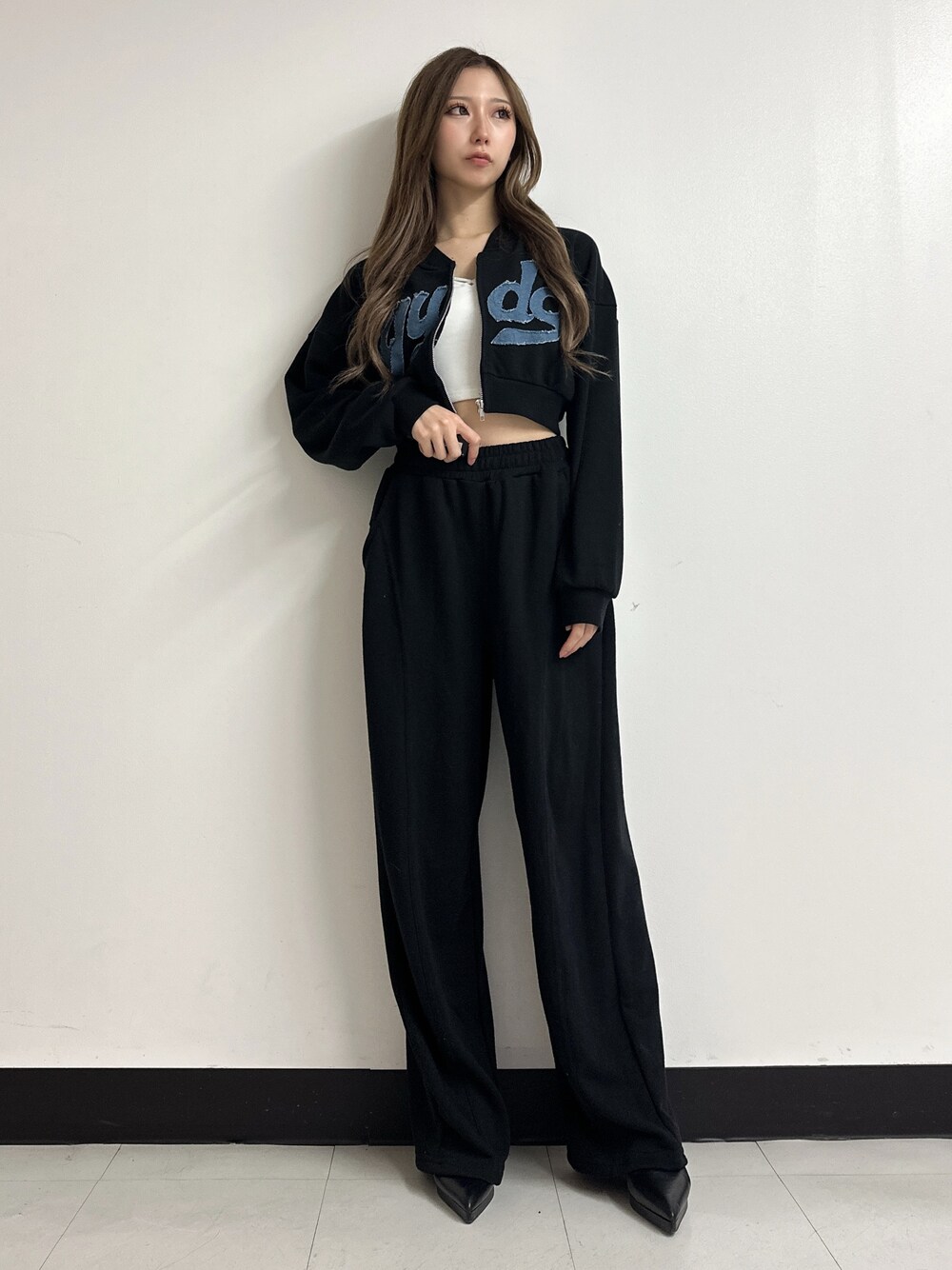 【トップス】 デニム生地でデザインされているGYDAのロゴが可愛いアイテム♡♡ スウェット素材なのでカジュアルにもスポーティーにも着こなる万能アイテム!! 前を閉めてトップスとして着用も可愛いです!♡ 【スウェット】 ワイドシルエットで美脚効果抜群のスウェットパンツ。ウエストは内紐で調整できるゴムの仕様なので伸縮性も抜群で履きやすいです!! トップスとセットの着用がオススメ✨ 【インナー】 GYDAで大人気のビスチェ♡♡ パット付きなので1枚で着用可能です! シンプルなパーカーやカーディガンなどの下に着用すると胸元のバインダー部分のデザインが目立って可愛いんです♡♡ 【シューズ】 定番のポインテッドミュールにストームがプラスされ歩きやすくなった新作のミュール❤︎ 高低差も無くなり安定感があり足も疲れにくいです!! デニム合わせやロングワンピの下など春先からデイリーユースに使って頂ける万能アイテム✨ 23.5cmでSサイズ着用. かかともパカパカもせずピッタリで着用できています.