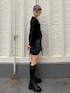 【ワンピース】 MINAMIxjouetie 🖤COLLABORATION ITEM🖤 フロントとバックのシャーリングで着丈をコーデに合わせて調節でにます! 一枚でも主役級アイテムですが、着用画像のようにレイヤードにも使えます!! 【ニット】 透け感のあるシアーニットで春らしい抜け感コーデ! フロントのギャザーでシルエット調整できてスタイルアップ効果! インナー次第で雰囲気変えられて着回し力抜群です! 【ブーツ】 24.5cmでLサイズ着用 レースアップのデザインが珍しくて可愛い! 履くだけでスタイル良く見せてくれる優秀アイテムです! 見た目以上に軽量で、長時間の着用でも疲れにくいです!