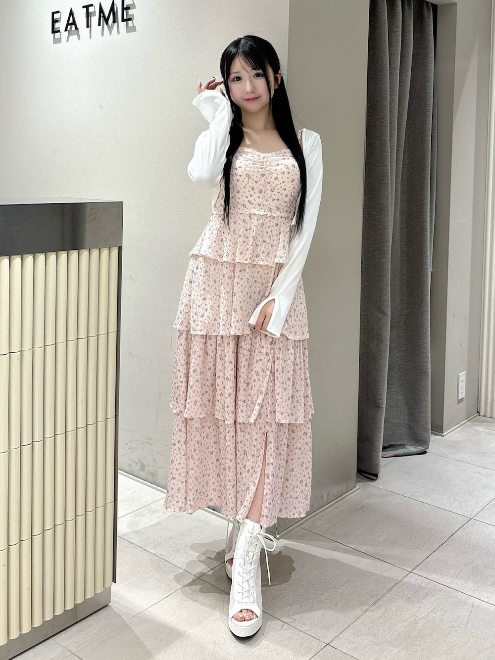 MANAMI(EATME)のワンピース「BACKリボンティアードロングワンピース」を使ったコーディネート