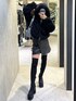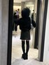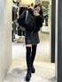 ブラックファーブルゾンのギャルコーデ 💟OUTER💟 ふわふわのファー素材で、で大きめフードも付いているブルゾンです🥺🖤 これは羽織るだけでもう可愛いブルゾンです!!!!リアルバイ候補!!!!! メタリックなチャックがファーとの対比でオシャレなのもポイント🥺 丈も短いので、ハイウエストなボトムスと合わせるとスタイルアップします!😻 ファーのフードが大きめなので、小顔効果も半端ないです!!🥹🩷 首周りまで襟があるので、髪の毛はまとめるとバランスいい気がします👱🏻♀️🖤 ブラックは一番光沢感があるので、より強めギャルな感じが好きな方にはオススメです🖤🪩 💟TOPS💟 ロゴパッチのデザインが主役になる長袖トップス💖サラッとしたリブのカットソーなので着やすく、アウターを着てもフロントを開けるとデザインが見えてコーデの主役になってくれます🥺🫶🏻 絶妙な色合い、袖にサムホールがあるので萌えになるのもポイント🪩🖤 💟BOTTOMS💟 ラップデザインになっているかわいいスカートです🤍🖤🎶 台形のようなデザインのおかげで 太ももの細見え度はMAX✊🏻💗 かのスカートに比べると若干丈長めなので大人っぽい印象にも出来ます🤍 身長155cm・ウエスト 56cm・腰骨79cm・ヒップ83cm の私はSサイズ着用! 少しゆとりありました! 💟BOOTS💟 ネットでも話題沸騰🥹💞超足盛れる&細見えする厚底ブーツです!!💞 S.M.Lでどれも約12cmあるので、スタイル抜群なコーデができます🖤 ヒールですが、底が面になってるので安定性・歩きやすさは抜群です❤️🔥🎶 スエードっぽいマットな生地は伸縮性があるので、とっても履きやすく適度な着圧感あります😽♥️ 長いデザインですが、折って長さ調整出来るので、色んなスカートの丈に合わせられます!🎶💭 シンプルなデザインなので、どのスカートも合わせられるオールラウンダー💖 スキニーの上から被せるのも上級ギャルにおすすめの履き方😸🩷 (普段23.5-24.0cmでMサイズ着用です!) 💟BAG💟 アウトポケットのトレンドデザイン!色合いの可愛さはもちろん、デザインがかっこいいのでギャルは必見バッグ👩🏼💖