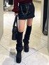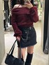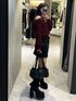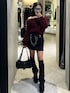 REDとブラックの甘辛コーデ 💟TOPS💟 店舗限定のワンショルトップスです😻🫶🏻 薄手のニットの生地感やチョーカーデザイン、ゆとりのあるデザインが可愛いワンショルダーです💖 オフショルにもできるので、好みに合わせたコーデがしやすいです💭 チョーカーも巻き方は色々できますが、首周りに巻いてあげるのが可愛いかなと思います💖 💟BOTTOMS💟 カジュアルに可愛い台形デニムスカート💗🫶🏻 デニムの色合いがどれも絶妙で可愛く、 どのトップスにも合わせやすいので、1枚持っておいて欲しいアイテムです🥹🤍 中にショートパンツも入ってて安心!!裾が台形に拡がっているので、足の細見え効果も絶大です😻💕 (Sサイズ着用・少しゆとりあり :ウエスト 56cm・腰骨79cm・ヒップ83cm) 💟BELT💟 巻くだけでコーデをグッとお洒落にしてくれる優秀ベルト!!🥺💗 ベルトループがないボトムスでも、ベルトの終わりを1周目に入れ込むことで使えます! ベルトループがある場合は、チェーンが降りない右側の部分だけを、ループに通して使います! 💟BOOTS💟 ネットでも話題沸騰🥹🩷 超足盛れる&細見えする厚底ブーツです!! S.M.Lでどれも厚底あるので、スタイル抜群なコーデができます🖤🪩 ヒールですが、底が面になってるので安定性・歩きやすさは抜群です🥹🎶 スエードっぽいマットな生地は伸縮性があるので、とっても履きやすく適度な着圧感あります💖 ギャザーデザインで存在感出しつつも、どのスカートも合わせられるオールラウンダー😻 (普段23.5-24.0cmでLサイズ着用です!) 💟BAG💟 ヴィンテージ感あるレザー風のバッグです!🖤見た目の何倍も軽くてびっくりします〜!!🥹トレンドのスタッズが施されてるのも可愛いポイント!! 生地の風合いや色合いの可愛さはもちろん、手に持つと思ってたより容量があるので、テーマパークなどに大活躍します😭💖 💟コーデのポイント💟 カラーを抑えつつ、間をとって華やかさをプラスするためにチェーンのベルトを使いました🪩🤍
