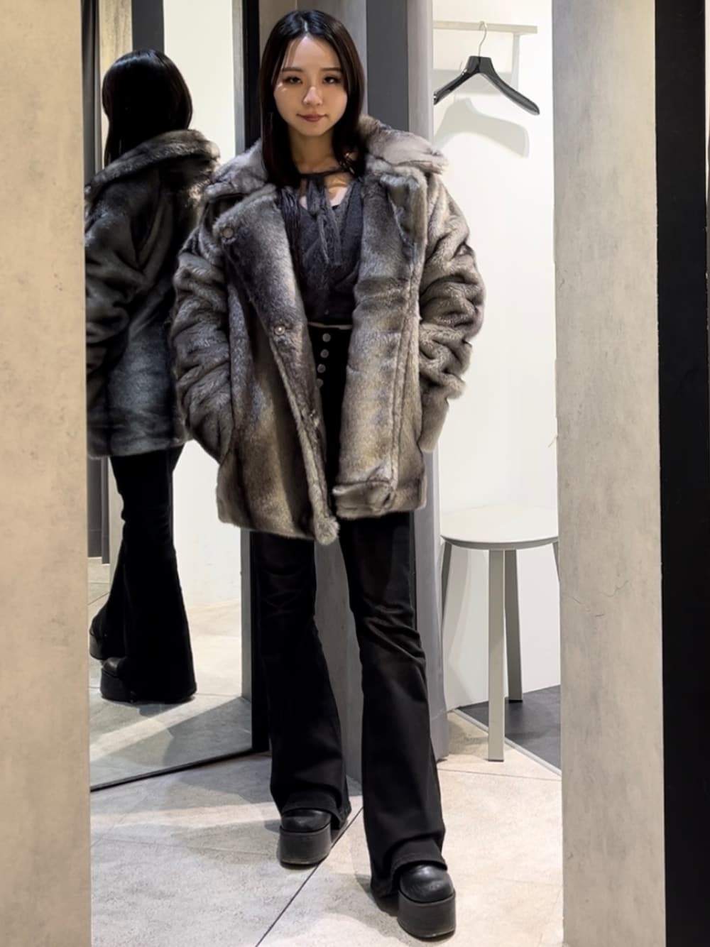 💟OUTER💟 超可愛い毎年即完売のファーコートです🥹💖 なんと言ってもファーの色合いと記事の厚み、軽さ、そして圧倒的な暖かさがオススメの理由です!🥹ゲットしてもらって後悔はさせません😭💖 丈感はヒップがちょうど隠れるくらいのオーバーサイズなので、足が細見え&強めギャルな印象になります😸🖤✨️ 襟を立たせると首周りがしっかりホールドされるので、マフラー要りません😳💗 ボトムスはミニスカでロングブーツのコーデ、またはデニムのコーデがオススメです!! 人気のニーハイブーツ(膝上ブーツ)に合わせるのが1番オススメです!🖤🥹 ポケットも大きいのでバッグが小さめでも大丈夫😽💗 💟TOPS💟 シャギーのふわふわとドレープのゆったりしたデザインの掛け合いが可愛すぎるニットです🥹♥️クロスデザインは前でも後ろでも使えるので、2WAY仕様です💖💖💖 手元もゆったり可愛いので、フェミニンな印象にできますし、丈が短いのでハイウエスト無ボトムスに合わせるのがスタイル抜群になるのでオススメです💖 💟BOTTOMS💟 マイナス5キロデニムのフレアパンツ🥹🖤🖤🖤 ハイウエスト+長めの丈なので、足が8割のスタイルになるのがポイント♥️ 今回のデザインはバックに立体的なリボンデザインが付いていて、思わず目を引く半端ない可愛さのフレアデニムです😭💖💖💖🎀 EMODAの短めな丈のトップスと合わせるとリボンが見えやすいのでオススメです ✨️ 全体的にウォッシュも控えめなので、キレイめな服やガーリーなアイテムと合わせるのが一番可愛いです😻💞💞💞 (XSサイズ着用・ジャストフィット :ウエスト 56cm・腰骨79cm・ヒップ83cm) 💟BOOTS💟 超足盛れる厚底ブーツです!! S.M.Lでどれも約12cmあるので、スタイル抜群なコーデができます🥹🩷 ヒールですが、底が面になってるので安定性・歩きやすさは抜群です❤️🔥 シンプルなデザインなので、どのコーデにも使えて、デニムパンツもスカートも合わせられるオールラウンダー💖 (普段23.5-24.0cmでMサイズ着用です!) 💟コーデのポイント💟 全体的にモノトーンで固めて、ファーコートを1番外に着せることでかっこいい印象で決めました!!このコーデならどんな通学バッグを持ってもモノトーンなかっこいい雰囲気は保ったまま過ごせます🥹🖤