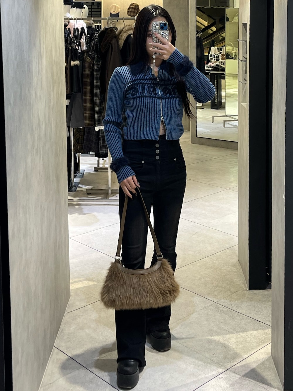 💟TOPS💟 色鮮やかなカラー展開が可愛いトップスです!!💖シャギーが付いていたり、リブの素材感があるので、体のラインを拾いつつ手元やフロントを華やかにしてくれるので、コーデの主役になりす🥹♥️ 逆開けジップ付きなので、スタイリングに合わせてもっとラフにもできます🖤 💟BOTTOMS💟 マイナス5キロデニムのフレアパンツ🥹🖤 ハイウエスト+長めの丈なので、足が8割のスタイルになるのがポイント💖💖 今回のデザインはバックに立体的なリボンデザインが付いていて、思わず目を引く半端ない可愛さのフレアデニムです😭💖💖🎀 EMODAの短めな丈のトップスと合わせるとリボンが見えやすいのでオススメです!✨️ 全体的にウォッシュも控えめなので、キレイめな服やガーリーなアイテムと合わせるのが一番可愛いです😻♥️♥️♥️ (XSサイズ着用・ジャストフィット :ウエスト 56cm・腰骨79cm・ヒップ83cm) 💟BOOTS💟 超足盛れる厚底ブーツです!! S.M.Lでどれも約12cmあるので、スタイル抜群なコーデができます🥹🩷 ヒールですが、底が面になってるので安定性・歩きやすさは抜群です❤️🔥 シンプルなデザインなので、どのコーデにも使えて、デニムパンツもスカートも合わせられるオールラウンダー💖 (普段23.5-24.0cmでMサイズ着用です!) 💟BAG💟 ふさふさのファーに覆われたバッグです🥹🤍見た目のインパクトがあるので、コーデのワンポイントにも使えるし、トレンド感を一気に出すことが出来ます😻💖 💟コーデのポイント💟 トップスのシャギーやデニムパンツのバックリボン、ファーのバッグなど素材感を生かしたコーデです💗
