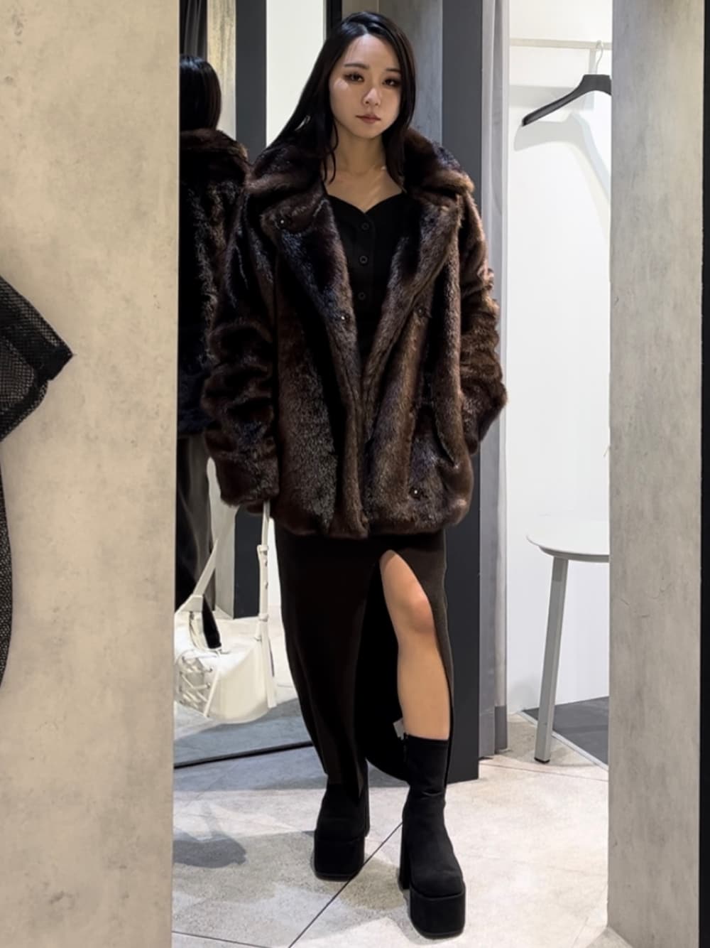 💟OUTER💟 超可愛い毎年即完売のファーコートです🥹💖 なんと言ってもファーの色合いと記事の厚み、軽さ、そして圧倒的な暖かさがオススメの理由です!🥹ゲットしてもらって後悔はさせません😭💖 丈感はヒップがちょうど隠れるくらいのオーバーサイズなので、足が細見え&強めギャルな印象になります😸🖤✨️ 襟を立たせると首周りがしっかりホールドされるので、マフラー要りません😳💗 ボトムスはミニスカでロングブーツのコーデ、またはデニムのコーデがオススメです!! 人気のニーハイブーツ(膝上ブーツ)に合わせるのが1番オススメです!🖤🥹 ポケットも大きいのでバッグが小さめでも大丈夫😽💗 💟ONEPIECE💟 フロントのカールデザインやスリット、体のラインを出してくれる美シルエットが素敵なワンピースです🥹🖤 体のラインを全てを拾いすぎず、でもクビレなどはきゅっと細見えしてくれる細見えワンピでもあります💖 どのカラーも深みのある色で大人っぽい印象になります♥️ 155cmの私は厚底履かなくても地面には付かないですが、8cm位は厚底あると安心して着れるし見映えもいいなと思いました💗💗 💟BOOTS💟 人気の厚底ブーツの中でもスエード生地で高級感あるギャル厚底🥹🖤他のブーツに比べて足首のところが足に沿うように薄い生地になっているので、足を綺麗に見せてくれます🥹💖 (普段23.5-24.0cmでMサイズ着用 ぴったり) 💟BAG💟 レースアップのデザインと鮮やかな発色が目を引くレザーバッグです👑 見た目は小さいですが、マチが広く容量もテーマパークなどに行くには十分な大きさです!!😻💗 色んなコーデに合わせやすいので、プレゼントにもオススメです🥹🫶🏻 💟コーデのポイント💟 brownのワンピに光沢感あるブラウンのファーコートを合わせて普段より特別な雰囲気にしました!