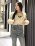 💟TOPS💟 シャギーのふわふわとドレープのゆったりしたデザインの掛け合いが可愛すぎるニットです🥹♥️クロスデザインは前でも後ろでも使えるので、2WAY仕様です💖💖💖 手元もゆったり可愛いので、フェミニンな印象にできますし、丈が短いのでハイウエスト無ボトムスに合わせるのがスタイル抜群になるのでオススメです💖 💟BOTTOMS💟 マイナス5キロデニムのフレアパンツ🥹🖤 ハイウエスト+長めの丈なので、足が8割のスタイルになるのがポイント💖💖 今回のデザインはバックに立体的なリボンデザインが付いていて、思わず目を引く半端ない可愛さのフレアデニムです😭💖💖🎀 EMODAの短めな丈のトップスと合わせるとリボンが見えやすいのでオススメです!✨️ 全体的にウォッシュも控えめなので、キレイめな服やガーリーなアイテムと合わせるのが一番可愛いです😻♥️♥️♥️ (XSサイズ着用・ジャストフィット :ウエスト 56cm・腰骨79cm・ヒップ83cm) 💟BOOTS💟 人気の厚底ブーツの中でもスエード生地で高級感あるギャル厚底🥹🖤他のブーツに比べて足首のところが足に沿うように薄い生地になっているので、足を綺麗に見せてくれます🥹💖 (普段23.5-24.0cmでMサイズ着用 ぴったり) 💟コーデのポイント💟 全体的に透明感あるカラーでまとめて春らしいコーデにしました🌸🤍