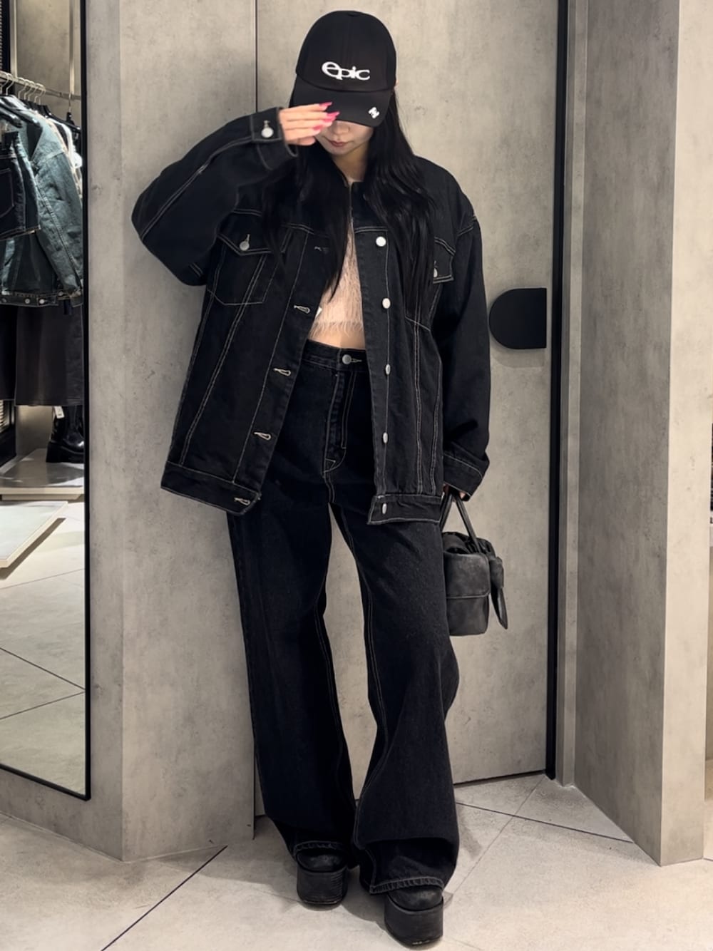 💟CAP💟 ウォッシュの色合いが可愛いキャップです🖤 ツバが広めなので小顔効果も◎ 少しカジュアルなアクセント足したい時にぴったりなアイテムです!!🌟 💟OUTER💟 デニム感や襟のレザーがカジュアルでかっこよく使えるアウターです!🪩 取り外しできるキルティングの中綿が着いているので、まだ寒い春先まではそのまま、少し暖かくなってきたら取り外して使えるので、長い間楽しめます😻🖤 オーバーサイズなのでワイドデニムやミニ丈に合わせるのがオススメです🥹🌟 💟TOPS💟 シャギーのふわふわ感とラメが可愛い今期イチオシのニットです😻♥️♥️♥️♥️‼️‼️ 5色もありますがどれも可愛くて全部欲しくなります!!カラーによって雰囲気変わるので何色かゲットするのもアリです🥹🫶🏻 やわらい素材なので袖元のルーズなシルエットが柔らかい印象になってとても可愛く、丈は短めなのでハイウエストなデニムと合わせるとかっこよくもなります🖤🖤🖤 襟口はだんだん緩くなる設計なので、ワンショルダーやオフショルダーにして着ることもできます😻💖💖💖 💟BOTTOMS💟 ストーレートなシルエットでなんにでも合わせられて可愛いデニムです🫧🖤 ワイドすぎず、でも欲しい太さがあるので、シルエットもとても理想的です💗 ウエスト 56cm・腰骨79cm・ヒップ83cmでサイズはSサイズ着用、ピッタリです! 💟BOOTS💟 超足盛れる厚底ブーツです!!💞 S.M.Lでどれも12cm前後のヒールがあるので、スタイル抜群なコーデができます🖤 ヒールですが、底が面になってるので安定性・歩きやすさは抜群です❤️🔥🎶 シンプルなデザインなので、どのコーデにも使えて、デニムパンツもスカートも合わせられるオールラウンダー💖 (普段23.5-24.0cmでMサイズ着用です!) 💟コーデのポイント💟 セットアップで統一感とかっこよさをだしつつ、インナーのシャギーニットで抜け感と温かさを出しました💗