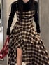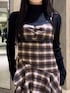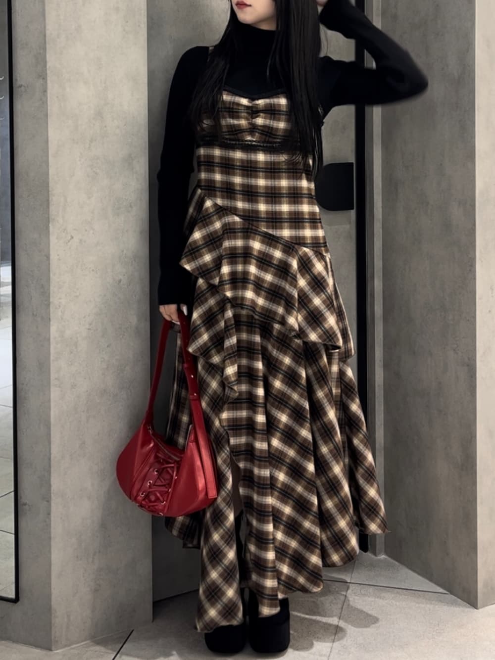💟TOPS💟 明るく可愛いカラー展開のハイネックなニットです💗胸元のロゴプレートもかわいいですし、薄手なのに着心地のいいリブ素材なのでずっと使えるアイテムです💗 💟ONEPIECE💟 チェック柄の色味やフロントにあるレースのディティールが可愛いフリルスリットワンピースです🤎🖤 全体的な可愛さや華やかさはもちろん、高めの位置にクビレを作っているので、着るだけで細見えするような美シルエットワンピースです🥹💖 スリットの位置もそんなに高すぎないので、キレイめに着れます! 💟BOOTS💟 人気の厚底ブーツの中でもスエード生地で高級感あるギャル厚底🥹🖤他のブーツに比べて足首のところが足に沿うように薄い生地になっているので、足を綺麗に見せてくれます🥹💖 (普段23.5-24.0cmでMサイズ着用 ぴったり) 💟BAG💟 レースアップのデザインと鮮やかな発色が目を引くレザーバッグです👑 見た目は小さいですが、マチが広く容量もテーマパークなどに行くには十分な大きさです!!😻💗 色んなコーデに合わせやすいので、プレゼントにもオススメです🥹🫶🏻