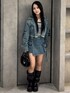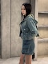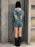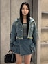 💟OUTER💟 デニムの色合いや横のリボンが可愛いデニムジャケットです🖤🌟 丈も短いのでスカートやフレアパンツ、ワイドデニムなど色んなボトムスに合わせやすいです🩷 取り外し可能なフードが着いているのも、唯一無二な可愛いポイント💗🫶🏻 💟TOPS💟 ベロアのシックな素材感と、胸元にキラッと輝くロゴプレートが可愛いトップスです!🥺🖤 透け感のある素材なので、夏頃に着たら涼しげて可愛いですし、肌寒い時はアウターのインナーにもピッタリです🩷 透け感があるので、インナーの色は黒や白、見えても大丈夫なカラーがオススメです🫶🏻 💟BOTTOMS💟 人気なラップショートパンツのデニム版です🥹💖色合いも可愛くデニム生地なので、春らしく様々なボトムスと合わせられます😭🩷 フロントについてるポケットは、iPhoneがすっぽり入るくらい実用的なポケットです🥺 ウエスト 56cm・腰骨79cm・ヒップ83cm の私はSサイズ着用!🌟 少しゆとりありました! 💟BOOTS💟 ギャザーデザインとベルトが可愛いブーツです🥹💖EMODAではめづらしくヒールが少なめで傾斜もほとんどないので、とっても歩きやすいです!!! ギャザーのデザインがコーデにトレンドを取り入れてくれるので、お手持ちのアイテムに合わせてみるのオススメです😻💖 普段23.5-24.0着用でMサイズです! 💟BAG💟 マイメロコラボのバッグです🐰🎀🖤 ボアとマイメロのワッペンがとってもキュート🥹💗 容量も意外とあるので、テーマパークなどでも大活躍🪽