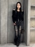 💟TOPS💟 もにゅっとした唯一無二な素材を使ったギャザーオフショルニットです💖 オフショルダーなのに上がってこないのがおすすめのポイント!これならライブでも使えます😻💖 華奢見え、細見えが叶うギャザーデザインもポイント🤍 💟BOTTOMS💟 マイナス5キロデニムのフレアパンツ🥹🖤 ハイウエスト+長めの丈なので、足が8割のスタイルになるのがポイント💗 カーブの編み上げレースデザインが可愛いフレアパンツです🖤膝上の太ももにダメージが入っているので、カジュアルな可愛さがあるのもポイント🥹💖 どのカラーも唯一無二なカラーで、春夏に向けて可愛い色展開です🎶 (XSサイズ着用・少しゆとりあり :ウエスト 56cm・腰骨79cm・ヒップ83cm) 💟BOOTS💟 超足盛れる厚底ブーツです!!💞 S.M.Lでどれも12cm前後のヒールがあるので、スタイル抜群なコーデができます🖤 ヒールですが、底が面になってるので安定性・歩きやすさは抜群です❤️🔥🎶 シンプルなデザインなので、どのコーデにも使えて、デニムパンツもスカートも合わせられるオールラウンダー💖 (普段23.5-24.0cmでMサイズ着用です!) 💟BAG💟 立体的なリボンが付いてて可愛すぎるバッグです🥹🎀🖤 コンパクトですが容量思ったよりあるので、テーマパークにピッタリです😽♥️ ブラックとブラウンはビンテージ感のあるレザーの風合いで、ブルーはマットな手触りの素材です🥹 💟コーデのポイント💟 モノトーンだけどデートコーデなので、黒が重く見えすぎないようにデニムはミルキーなウォッシュが入った色、バッグはダークだけど甘さを出してくれるブラウンにしました🖤バランスのいい肌見せをさせてるのもポイントです🧏🏻♀️🩷