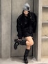 関口優香(EMODA)のニットキャップ/ビーニー「レザーパッチニットキャップ」を使ったコーディネート