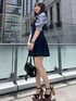 【ワンピース】 ハリのある素材とシンプルなシルエットが上半身をスッキリ見せてくれます。 骨格ストレートの方は首元のボタンを開けていただくと肩幅が気にならずに着こなせます。 154cmでSサイズ着用です。 【バッグ】 さりげなく着いたハートのチャームが、可愛らしさをプラスしてくれます。 【シューズ】 厚底で脚長効果がありコルク素材で夏らしさを演出してくれます。 24.5cmでLサイズ着用です。
