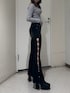 【トップス】 キラキラビジューが可愛いショート丈トップスです🩶✨️チェーンは取り外し可能です! 【デニム】 ストレッチがかなり効いていて、ハイウエストでご着用いただけます! サイドのキラキラビジューが可愛い💎 【シューズ】 24cm少し大きめでLサイズを履いています!前の厚みもあるのであまり高低差なく楽に履けます!