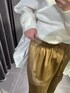 «カットソー» キャミソールインナーとスウェットがセットのカットソー☺︎ この一点あるだけで、レイヤードスタイルの幅がぐんと広がります!トップスにデザイン性があるのでボトムスはシンプルでもお洒落になります◎ «ボトムス» ウエストが全てゴム仕様になっているサテンパンツ☺︎ 足下のスリットがお洒落で楽見えしすぎないよう見せてくれています! 歩く度に起こる程よい揺れ感が女性らしくお気に入りです◎ «ミュール» 足が痛くなってしまいがちなアイテムですが、ELENDEEK のミュールはクッション性がありすごく歩きやすいです☺︎ ミュールですが、サンダルのようにスポッと履けるので楽さ重視の方におすすめです◎