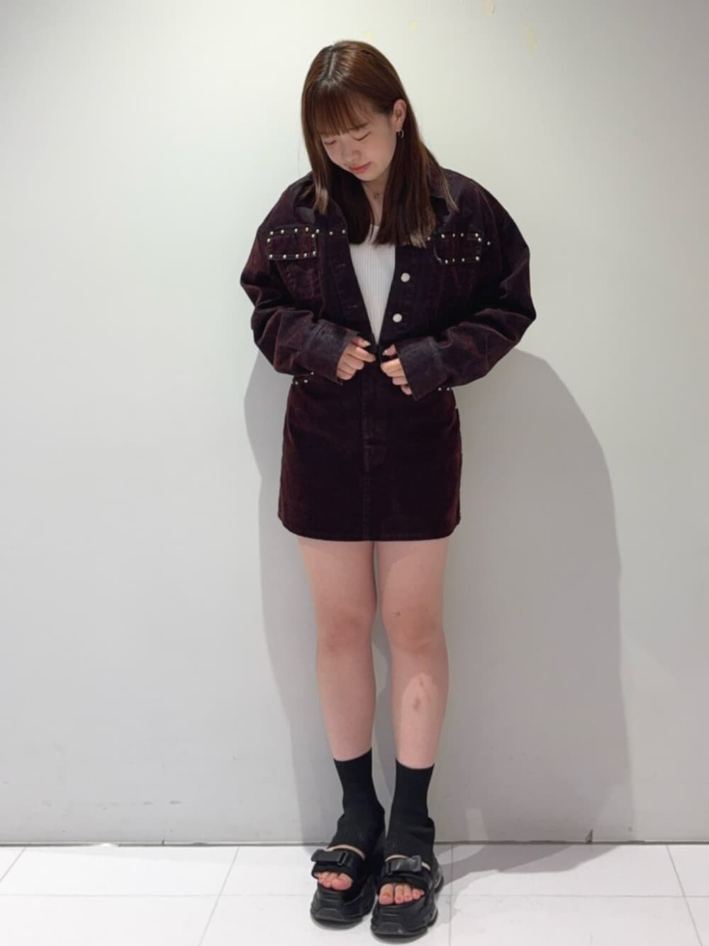 【アウター】 カラーGジャン!デザインも可愛い、色も可愛い、フロッキー加工でベルベットのような質感◎可愛くないとこがないです!! 丈はショートになってます! 【ボトム】 Gジャンとセットアップ可能なミニスカート! 絶対セットアップが1番可愛いですが、他のトップスと合わせてももちろん可愛いです♡ こちらもフロッキー加工でベルベットのような質感となってます! 【ブーツ】 とにかく足が綺麗に見える! 脚長!細見え!これ一つで叶います!! そしてなんと言っても履いてて疲れない 普段厚底あまり履かない私でも1日中履いても楽ちんなんです。 厚底履いてる感がないブーツで足首のとこは靴下のようにストレッチが効くので走れちゃいます笑 ※普段24.5センチか25センチ履いてる私で 24.5センチ履いてサイズ感ピッタリです。