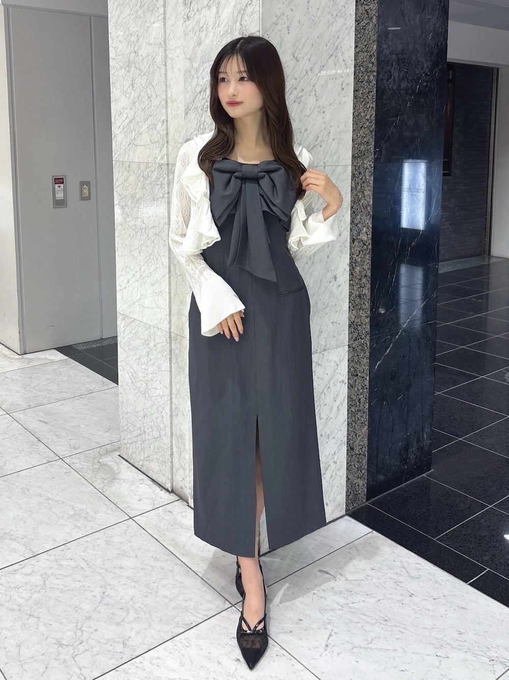 kanna(dazzlin)のワンピース「リボンデザインIラインワンピース」を使ったコーディネート
