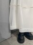 【tops】 異素材でウェーブ状に切り替えたソフトなペプラムシルエットのジャージートップス。 フラットな編地のジャージー生地と柔らかなダブルフェイスメッシュを使用。 【bottoms】 エアリーなダブルフェイスメッシュ生地を使用。 コクーンシルエットがウェーブ状に変形したようなフォルムが特徴的なスカート。 裏地には柔らかなジャージー生地を使用しており透けずに着用いただけます。 【shoes】 定番のグルカサンダルを、UN3D.らしくモードに再構築したサンダル。 ニュアンスのあるアメーバのようなウェーブラインがポイント。 親指が隠れるデザインなので、靴下などを合わせて長いシーズンご着用いただけます。 着脱はドットボタンなため、簡単に可能です。 【socks】 フリンジとシアーの組み合わせがポイントの靴下。フリンジは2種類の糸をMIXして奥行きのある表情に。 カラーブロックはUN3D.定番とシーズンカラーのMIXになっています。