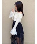 【トップス】 ベロアで肌触りの気持ちいいオフショル🤍 肩周りボリュームあるので首元貧相になりがちな方も着やすいです✨️ 袖口がチュール重ねで抜け感もプラス➕ 【ボトムス】 フェミニンさん!ガーリーさん!デニム履かない!リボン好き!な方必見☝🏻⭐️ 超プリティなリボンデニムです🎀 綺麗なフレアで脚長効果お任せ下さい🦵🏼‼️ 普段デニム履かない方もぜひ♩ 【シューズ】 ヒール高めで脚盛れるのに中はクッション性あって歩きやすい👡♥ 普段23.5cmでMサイズがぴったりでした!