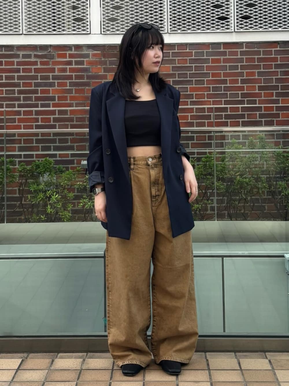 【アウター】ビックシルエットで肩幅が気になる方でも華奢見えします✨️ヒップ下まで丈感があり、より大人らしく着ていただけます💫 【デニム】主役級デニムで唯一無二のデザインになっています!腰周りも綺麗にカバーして、ウエストのタックで脚長効果◎ 【インナー】スクエアキャミでシャツやVネックのトップスにも合わせられます🍀見えてもいやらしくなく、カップ付きなので1枚で楽に着れます❣️ 【ブーツ】サンダルのように履きやすくヒールで身長が盛れます🖤スクエアトゥでオシャレ度🆙 【サングラス】形がとにかく可愛くて、大きすぎず小さすぎずのフレームが使いやすいです❕特徴的なフォックス型がワンポイントになります☀️