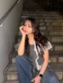 ◼︎TOPS◼︎ ボリュームあるデザインとフリルで抜け感を出しながらお洒落が楽しめるアイテム。オフショルで程よく肌見せしながら、鎖骨も綺麗に魅せてくれます!ウエストラインはゴムになっているため、ボリューム感を出しながらもスタイルアップ間違いなしのトップスです!デニム合わせはもちろん、ミニボトムとの相性も抜群◎ ◼︎PANTS◼︎ 足盛れ間違いなしの神デニム!グラデーションで色味が綺麗なのはもちろん、なんといっても形が綺麗すぎます!軽く柔らかい素材で、履くだけでスタイルアップできます。チビTやタンクトップ合わせなど、どのTOPSでも相性抜群です!