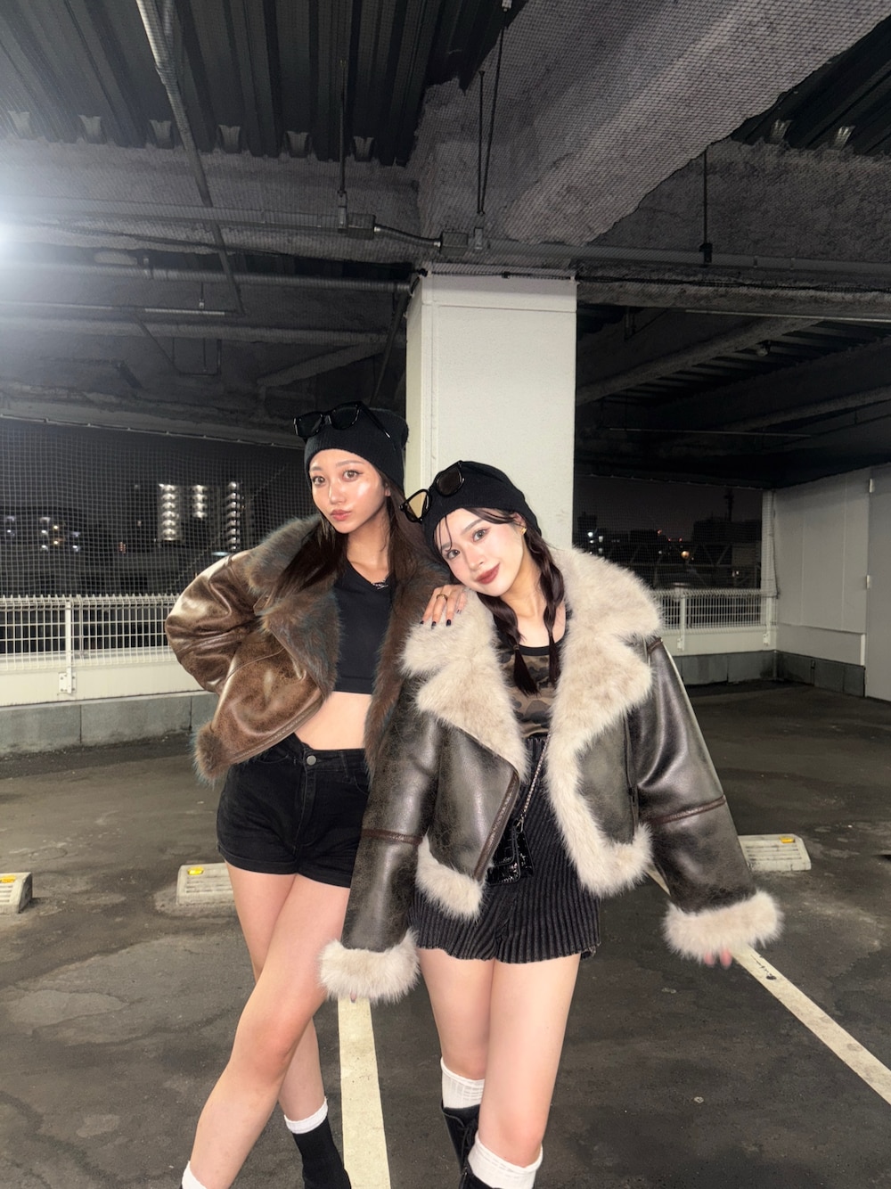 SAKURA(MURUA)のムートンコート「アンイーブンショートフェイクムートンジャケット」を使ったコーディネート