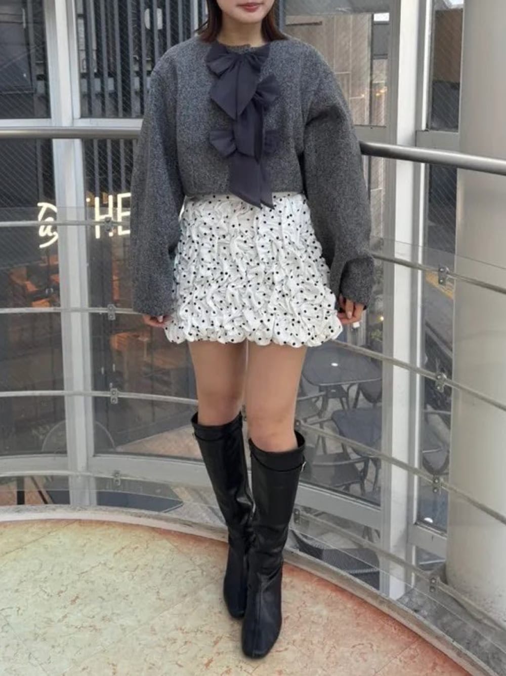 [ブルゾン] リボンが3連で付いているので着映えが叶う1枚になってます🎀 ブルゾンとしても上からアウターも羽織れるのでトップスとしても使って頂けます✨️ [スカート] 160cmでSサイズを着用しております。どのトップスにも合わせて頂ける万能なアイテムです️🩵スタイルアップにも繋がるのでお気に入りです🎶 [シューズ] 24.5~25cmのシューズを普段履いているのでLで着用しております。ヒールも高すぎないので歩きやすいアイテムになってます👣⸒⸒