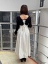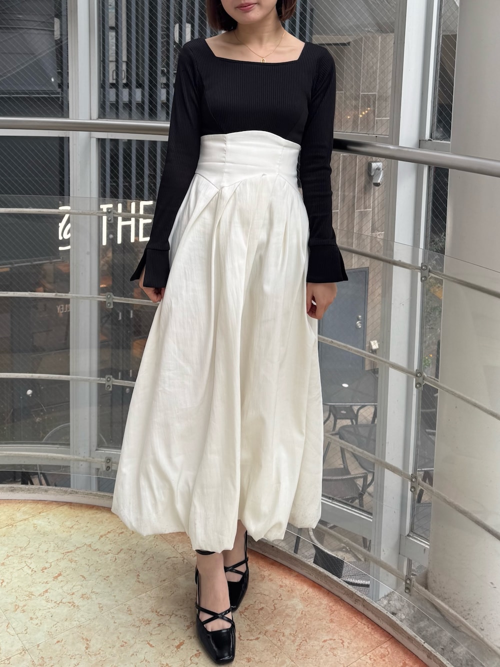 [ワンピース] ウエストがコルセット風になってるので細見えにも繋がるバルーンワンピースです✨🎈 ネックライン、鎖骨が見えるのでキレイめとしても着て頂けます🫶 後ろのリボンになってるので後ろ姿まで可愛くてオススメです🎀 [シューズ] 何にでも合わせれるフェミニンパンプスになってます🫧 甲もしっかりホールドしてくれるので安定感抜群です✊