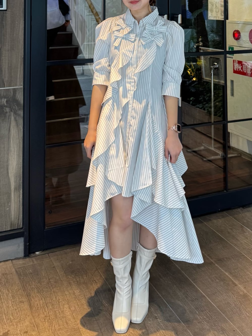 momoko(dazzlin)のワンピース「リボンディティールイレヘムシャツワンピース」を使ったコーディネート