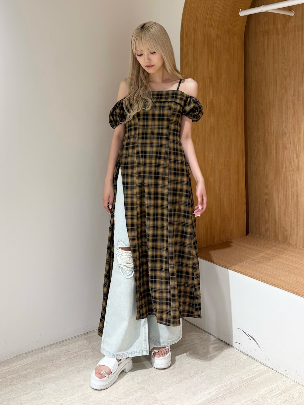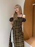 sara(Now me.)のワンピース「2WAYチェックロングワンピース」を使ったコーディネート