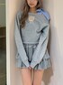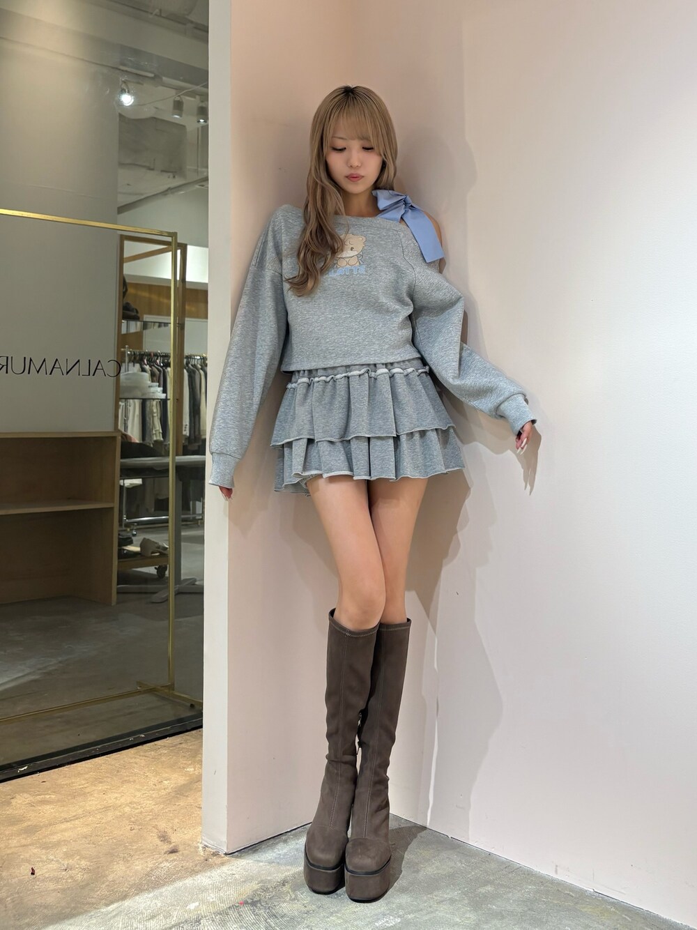 🩵CALNAMUR meets mikko illustration🩵 LOOKにてニコルさん着用のLATTE グレー合わせでセットアップ風に MOUSSEとCAMMYはピンクスカパン合わせもおすすめ 友だちと色違いで着用するのもかわいいです♡