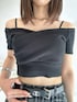 serina(GYDA)のTシャツ/カットソー「ハーフスリーブカシュクールオフショルショートトップス」を使ったコーディネート