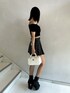トップス パット付きでインナーを気にせずに着ることができます!!🌟二の腕も隠してくれる万能アイテムです!毎年大人気です🎶 スカート 中にインナーパンツがはいっており安心して着ることができます!!ベルトも着いている商品でワンポイントでとっても可愛いです⸜❤︎⸝ 秋っぽさもありつつ今から使えるアイテムです💖 ブーツ 毎年大人気の厚底のブーツです!このブーツを持っていたら何を合わせても大優勝です❣️ つま先が尖ったデザインでコーデにメリハリをつけることができます! バッグ 何度も店頭で完売している大人気のバッグです🫶🏻ハンドバッグにもできますし、肩掛けのチェーンもあるのでショルダーバッグにもできちゃいます!!キルティングのデザインで綺麗めなコーデにとっても合います🙈💕︎
