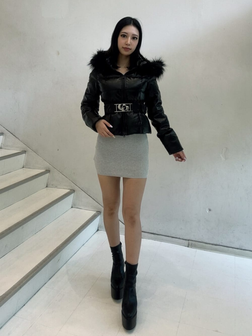 ダウン 毎年大人気のベルト付きダウンにレザーが発売されます🎵💕 とても高級感があります✨ウエストの位置でベルトを閉めれるので体のラインも綺麗に見えるし足も長く見えます♡ 大人気間違いなしのアイテムです!! (166cm、フリーサイズ) ワンピース 胸元がキラキラのワンピースです❣️ こちらのアイテムもとっても大人気で王道なギャルワンピースになっています🫶🏻 166cmでも丈感心配ないので高身長の方も着やすくなっています🎶 (166cm、フリーサイズ) ブーツ 万能すぎるブーツで撮影の時これしか履いてないくらいなんでも使えちゃいます!! パンツ系でもワンピース系でも何を合わせて頂いてもとってもかわいいです💓💓 身長も盛れるので脚長効果です✨ (24.5cm、Lサイズ)