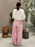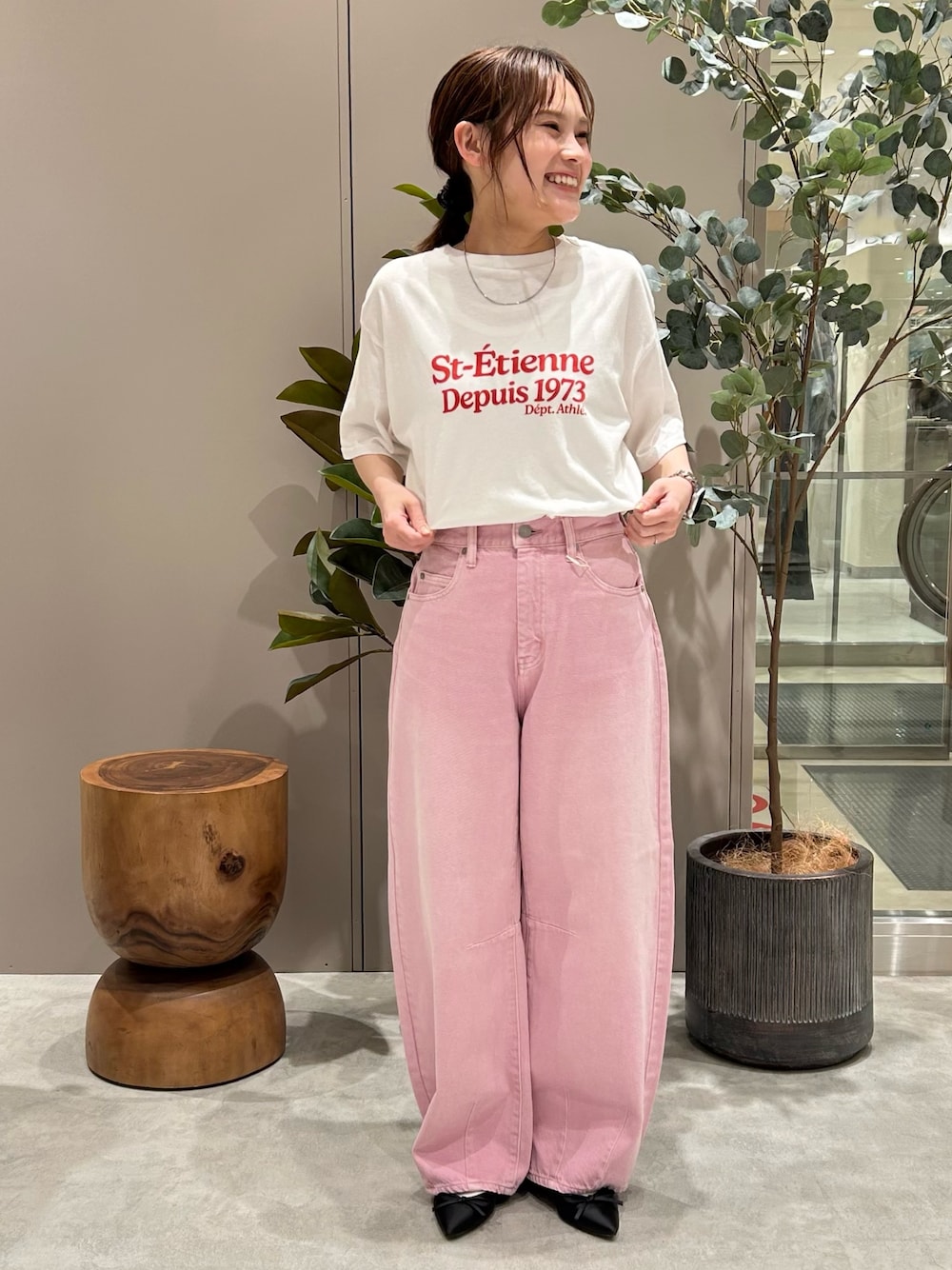 【デニム】 一枚で存在感あるピンクのカーブデニム🩷 くすみピンクなので大人の方でも履きやすい色味です☺️ 153センチの身長で24インチ着用してペタンコ靴はいても床にすらない丈間です◎ 【Tシャツ】 袖も裾も少しゆったりした作りで着心地も最高です👌🏻 シンプルな白Tにかわいい赤文字ロゴでどんなお洋服にも合わせやすいです! 全てのカラーとてもかわいいです😍