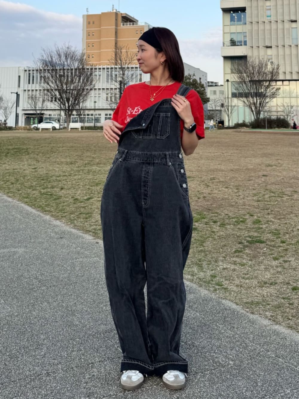 阿部いろは(Ungrid)のつなぎ/オールインワン「カーブシルエットデニムサロペット」を使ったコーディネート