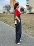 【all-in-one】 カーブシルエットが特徴のサロペット! 子供っぽくなりがちなサロペットですががカーブデザインのためシルエットが綺麗で低身長の方がきても崩れません🫶🏽 148cm/Sサイズで裾を一つ折りで着用してます🕶️ 【TOPS】 ロコがかわいいTEE🩷 お尻にかぶさるサイズ感でビックシルエット! デニムとの相性はもちろんスカートやワンピースのインナーでも可愛いです😍