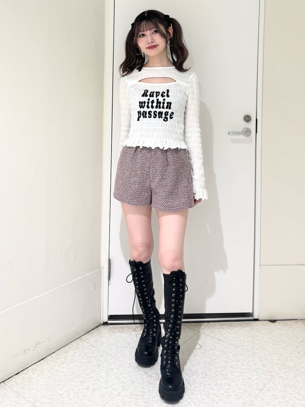 ✦トップス✦ 胸元のカットアウトが程よい位置でインナーも見えず安心して着用いただけます! 柔らかい素材で身体にフィットして着やすいです♡ ✦ボトムス✦ ホックタイプのショートパンツです! ハイウエストなので、脚を綺麗に見せてくれます◎ ✦シューズ✦ 普段24.5cmでLサイズ着用。