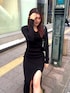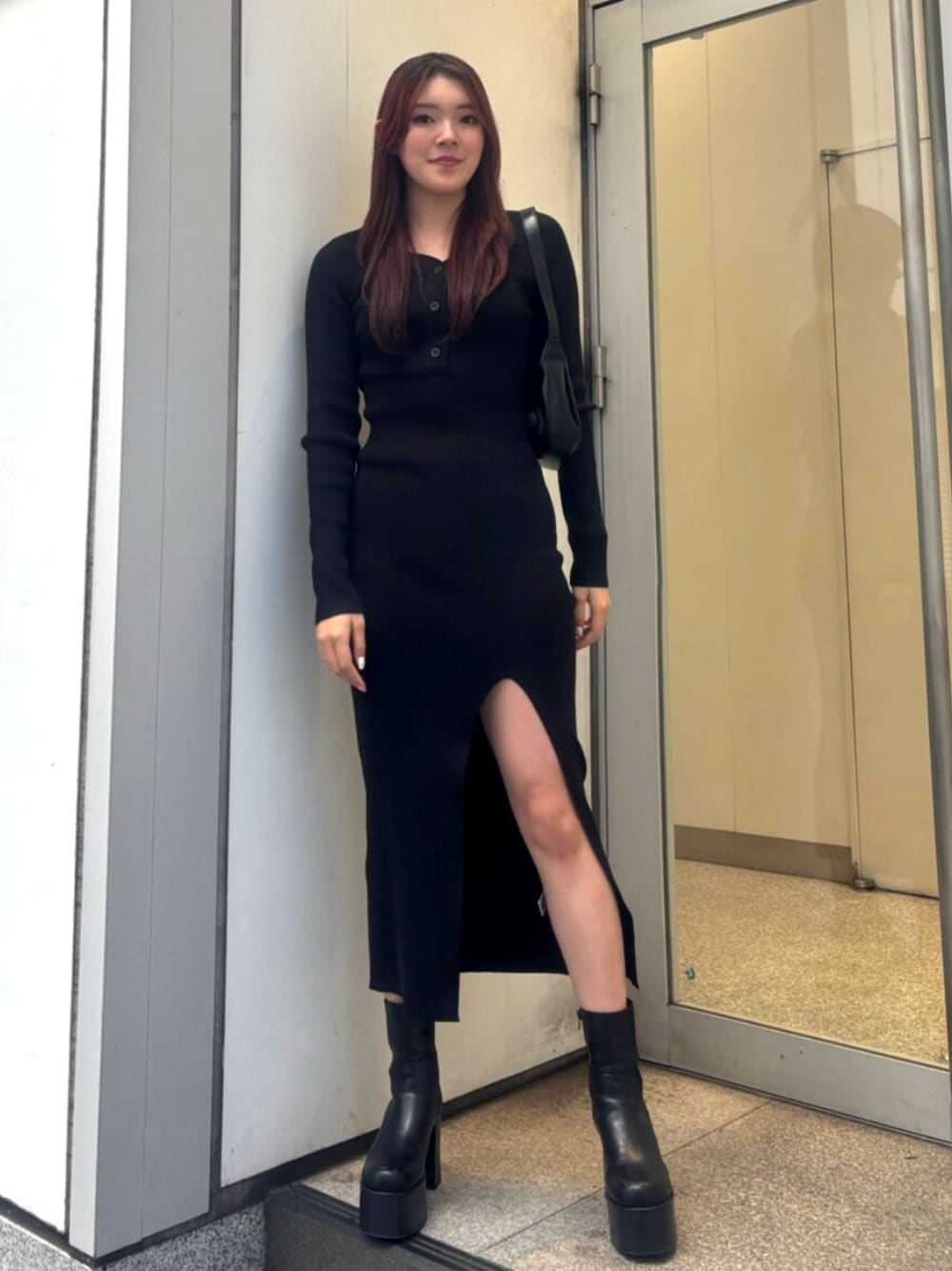 【ワンピース】縦リブでちょー細見えするワンピース👗ハートネックとフロントボタンで女性らしさアップ!ウエストはくびれてスタイル良く見える✨ 【バッグ】レースアップのデザインとレザーの生地感でカッコ可愛いバッグ!小さく見えるけどマチが広くおでかけの時にちょうどいい大きさ! 【ブーツ】25.5cmでL履けちゃう!軽くてダッシュできる!👍