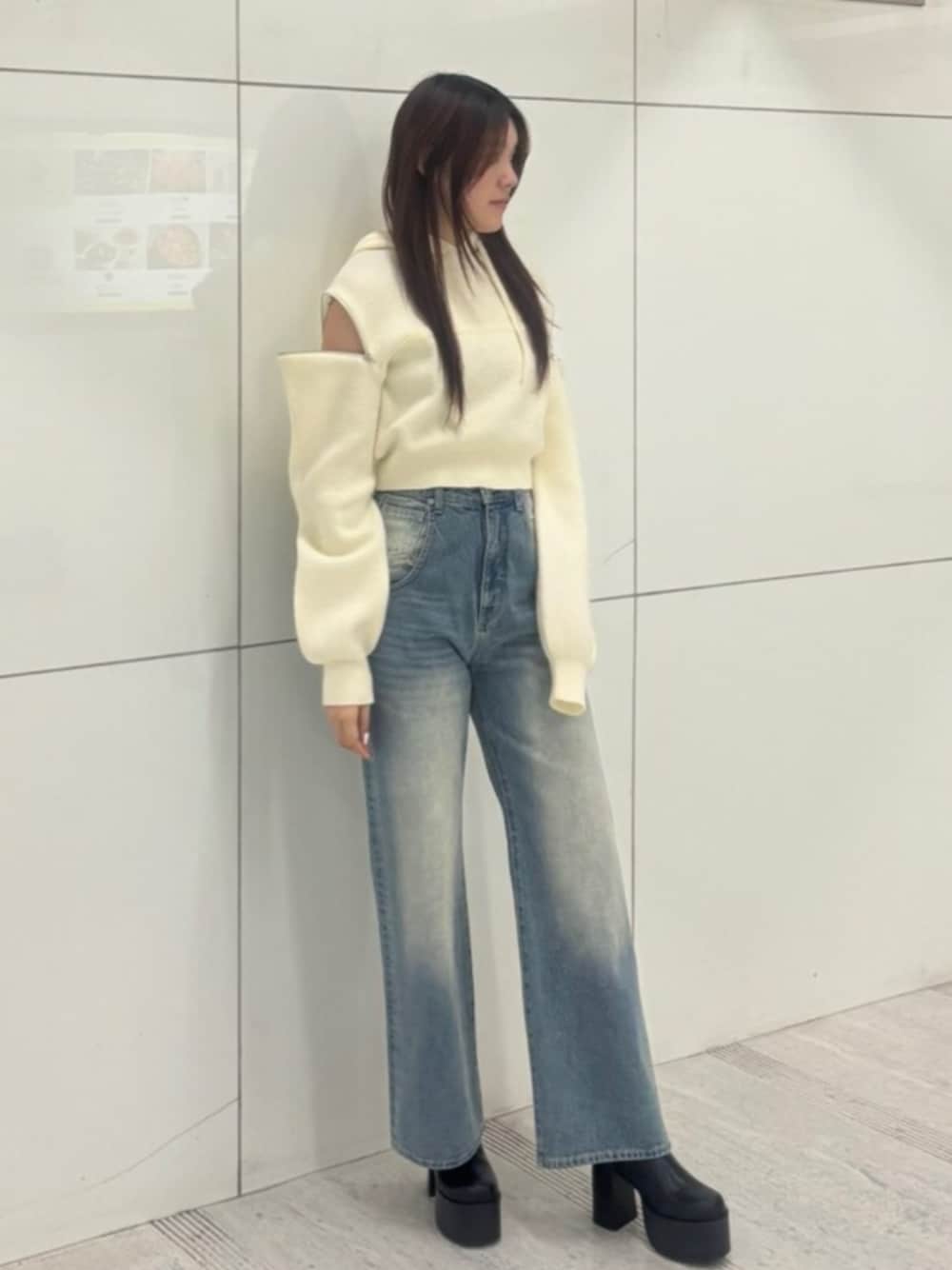 【トップス】腕のファスナー開け閉め自由!開けると抜け感アップ!程よく肌見せもできます! ニット素材でもちもちしてて着心地最高! 【ボトムス】後ろにハートのデザインがある所がポイント!ポケットの位置が高めで脚長効果抜群!167cmでM履けます!ダボっと感が好きな方Mがおすすめです! 【シューズ】軽くて好評のブーツ!傾斜も少なくて疲れにくい!25.5cmでL履けます!