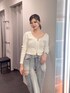 【トップス】店頭でも大人気✨️ GGがラメでキラキラZIPトップス❣️ Zipでお好みにおへそ部分など開けていただけたり胸元も空いてるので暖かい春の日にピッタリ🎀💕 【パンツ】 2Wayデニムパンツ👖 後ろ姿がとにかく可愛すぎるパンツ❣️ 前の𝑺𝒚𝒎𝒎𝒆𝒕𝒓𝒚の後ろのボタン外していただいたら半ズボンにもなれちゃいます🍀*゜ とても万能パンツです✨️ 【シューズ】毎年大人気バルキー👠 ヒール高めなのですが安定感抜群で歩きやすく足首部分も細くなってるので細見えします💞