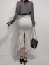 【EATME】カットアウトマーメイドスカート マーメイドシルエットだからスタイルアップもできて、 カットアウトにあるレースが抜け感、上品さを出してくれます。✨ ギャザーがついているのでおなか周りも隠してくれるのがうれしい♡ 【EATME】チュールドッキングキャミリブTOPセット グレーをチョイス。✨ 明るい色のボトムスでも暗い色でもなんでも合うこのグレーが大好き。🩶 着回し抜群アイテム。 中のチュール素材が大人フェミニンな印象にしてくれて、 女性らしさ、上品らしさを出したいときにぴったりです。♡ 【EATME】キルティングミニショルダーバッグ 大人デートをイメージしたコーデなので、 引き締めカラーとして黒をチョイスしました🖤 合わせるだけで一気に高級感がでてうれしい どのコーデにも合わせやすくて愛用中です♡♡ ✂︎------------------------------------✂︎ 水城 寧々 みずき ねね IG:@ne_ne_824 165㌢ 骨格ストレート ブルベ夏☀️
