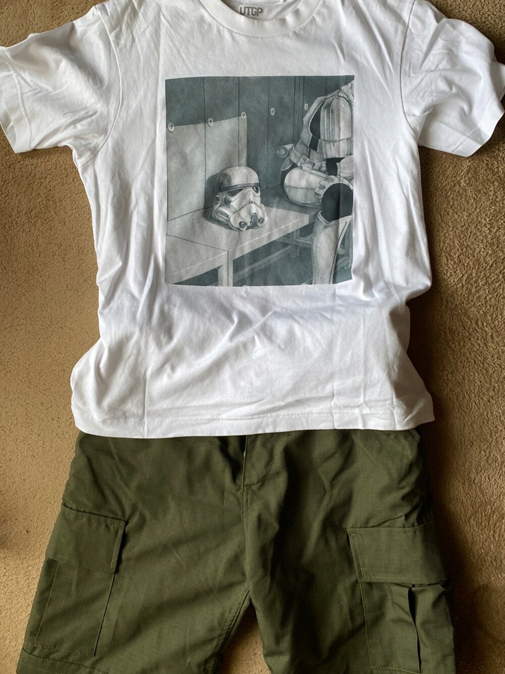 ユニクロのスターウォーズTは貰い物 古着屋で購入したカーゴショーツは500円 良い感じでしょ?