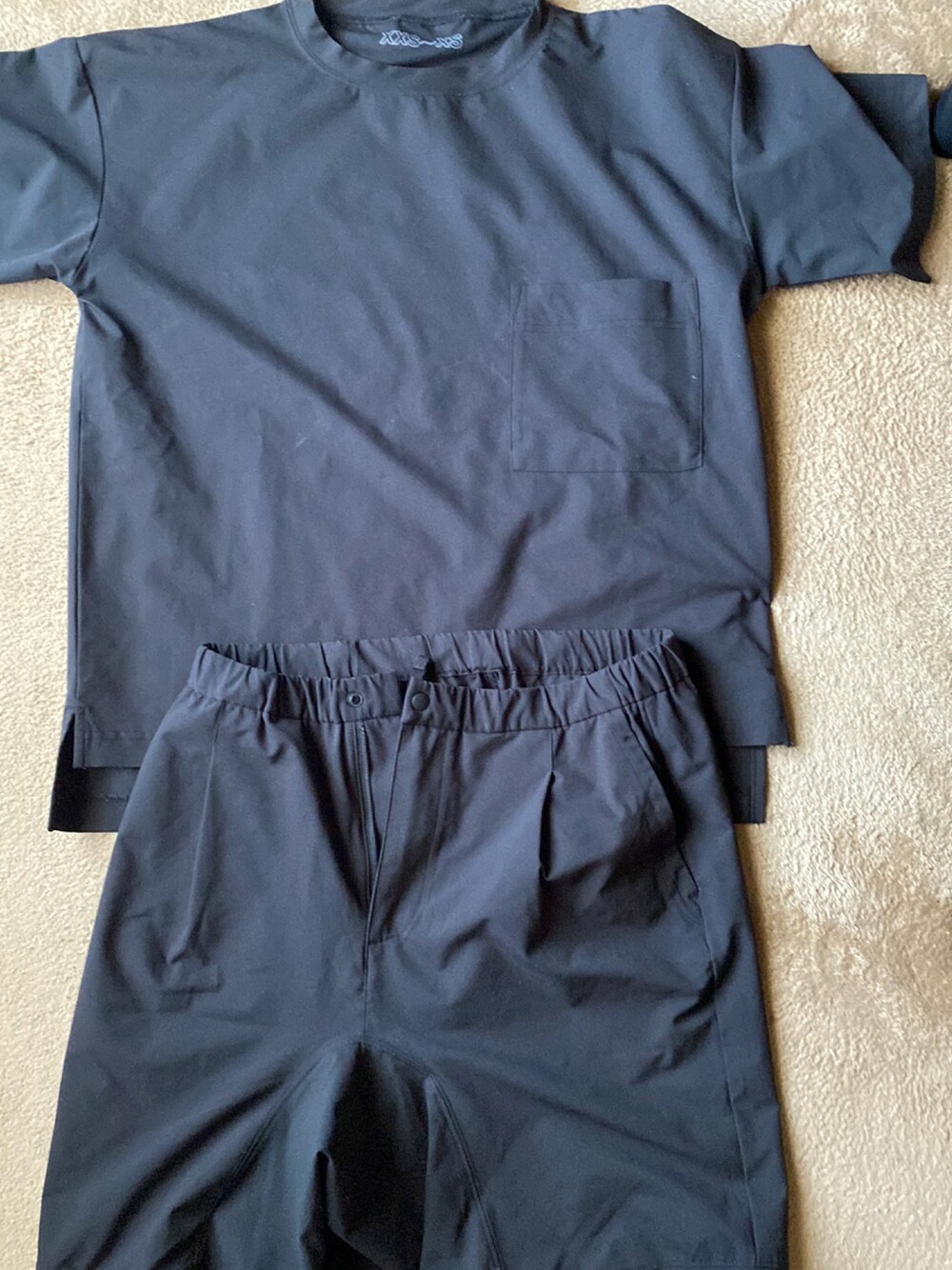 zozoに無印良品が来た記念 無印の黒のセットアップです 緩くて良い感じ 考えるの面倒な時に着ます