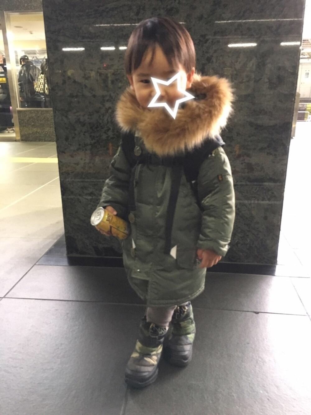 雪国へ 新入りのTHE NORTHFACE ヌプシが活躍 アウターは襟元がぐるっとファーになってかわいい 100cmですが、大きめなので来シーズンも使えそうです