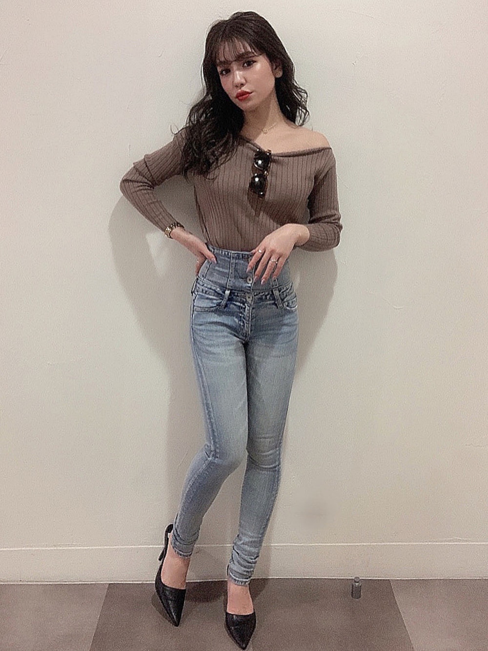 AIのパンプス「ポインテッドミュール」を使ったコーディネート