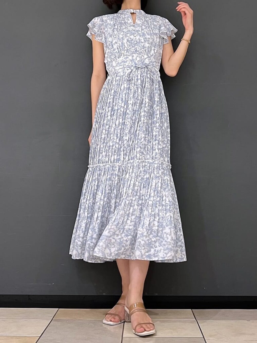miho(MERCURYDUO)のサンダル「クリアチューブスクエアトゥサンダル」を使ったコーディネート
