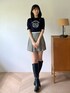miho(MERCURYDUO)のニット/セーター「カレッジロゴプリントニット」を使ったコーディネート