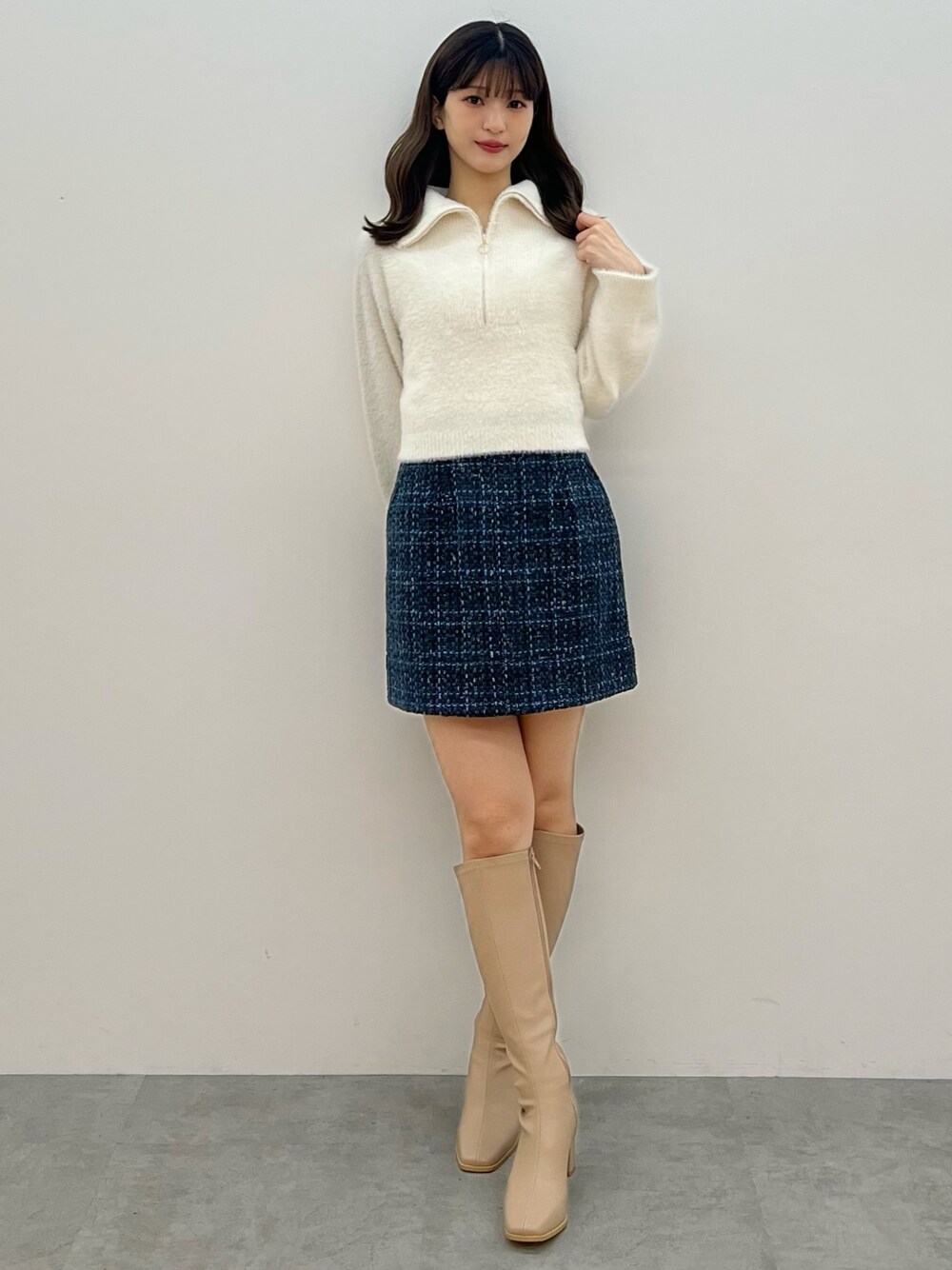 miho(MERCURYDUO)のニット/セーター「ミニシャギーハーフジップニット」を使ったコーディネート