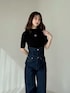 miho(MERCURYDUO)のその他パンツ「【EMILY IN PARISコラボ】2WAYハイウエストワイドデニムパンツ」を使ったコーディネート