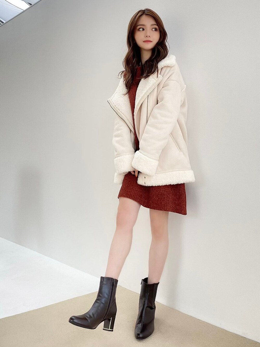miyu(RESEXXY)のムートンコート「ビッグシルエットフェイクムートンブルゾン」を使ったコーディネート