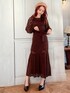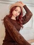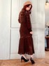 ブラウンワンピにベージュのベレー帽を合わせた愛されコーデ♪ 少し素肌が見える、ほど良い抜け感が◎! リボンでウエストマークして、スタイルアップも忘れません♪